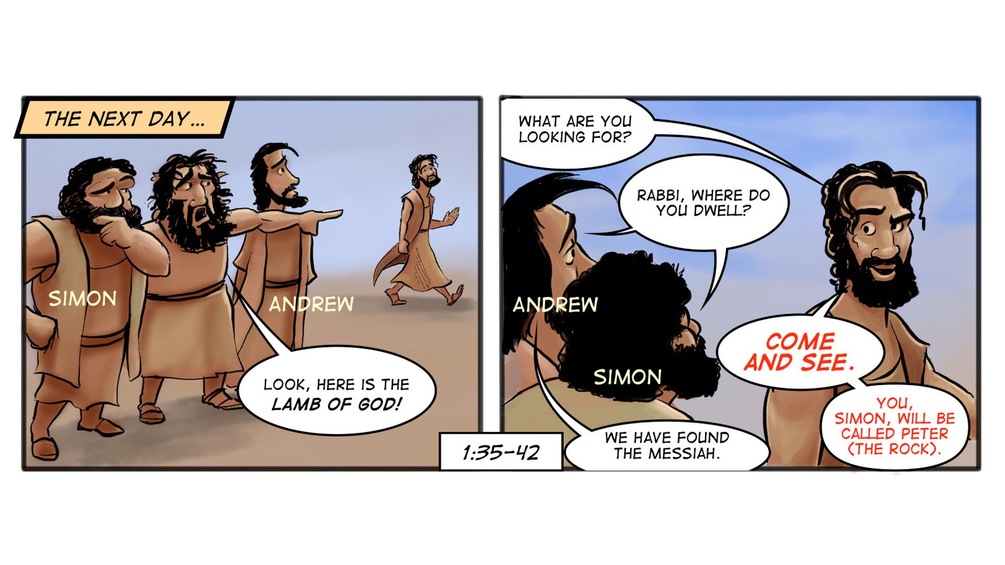 John the Baptist reveals Jesus as the lamb of God. Jesus calls his first disciples.