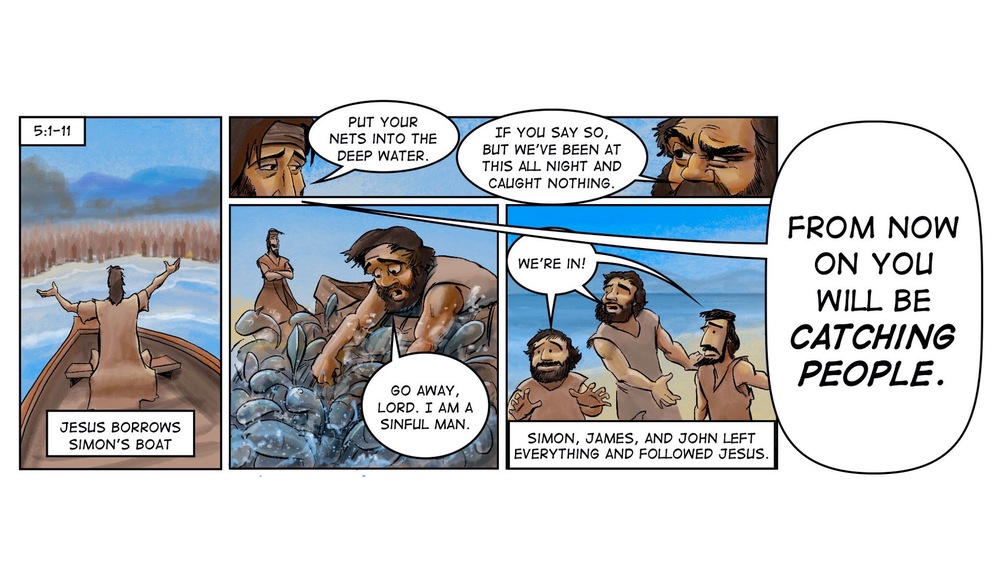 This PowerPoint and Image Pack offers a visual meditation on Luke 5:1-39. Jesus calls his first disciples, then has intense discussions with the religious leaders about healing, forgiveness of sins, and why Jesus hangs out with tax collectors and sinner.