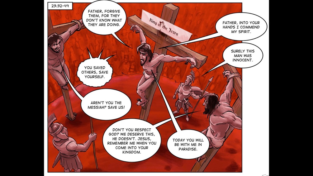 Read through the Gospel of Luke as a graphic Novel in 24 full-color pages. The Gospel of Luke tells the story of Jesus from the perspective of a defender of the poor, the weak, and the outcast. It begins with Jesus' humble birth in a stable and ends with his death on a cross and his resurrection from the dead.