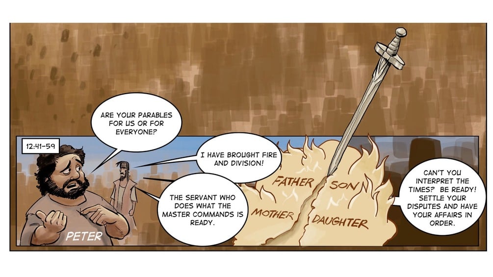 Preview this PowerPoint and read the commentary at https://cartoonistbible.com/the-bible-bookshelf/loj/luke/luke-page-16/
