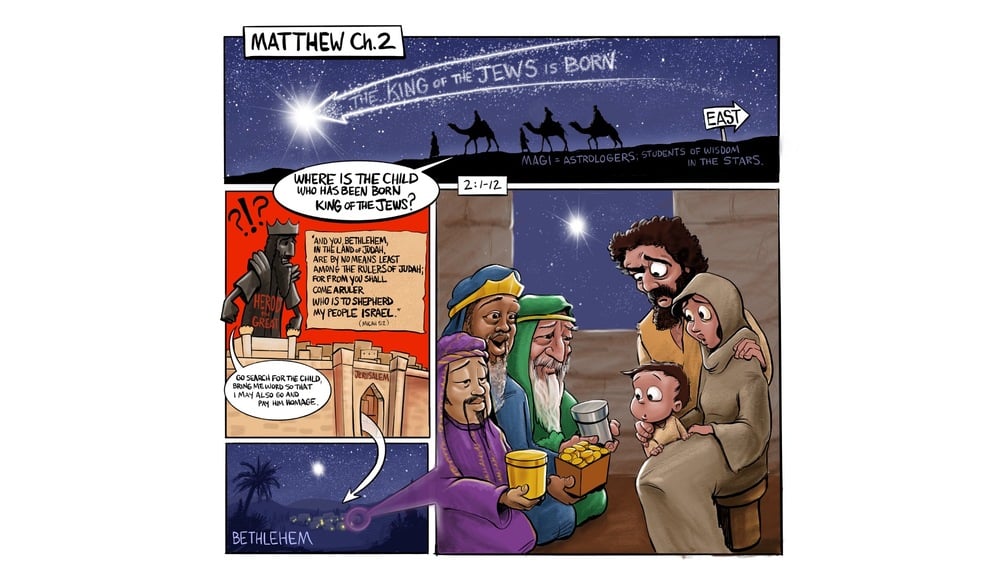 A Cartoonist's Guide to the Gospel of Matthew is a full-color graphic novel style telling of Jesus' life according to Matthew. Use these images to enhance your preaching and teaching by engaging your audience in a fresh way.