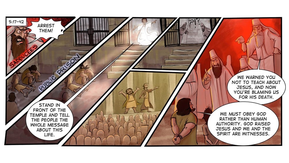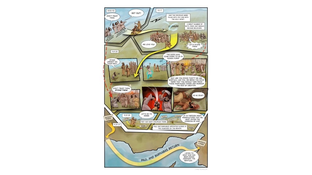 Read, Teach, and Preach through the Acts of the Apostles as a graphic novel. The download includes a 43-page, full-color graphic novel in PDF that you can print and hand out to your students. It also includes a PowerPoint and Image pack with 596 images that walk through the entire story panel-by-panel, word balloon-by-word balloon. This is a fun and engaging way to tell the story in a fresh way.