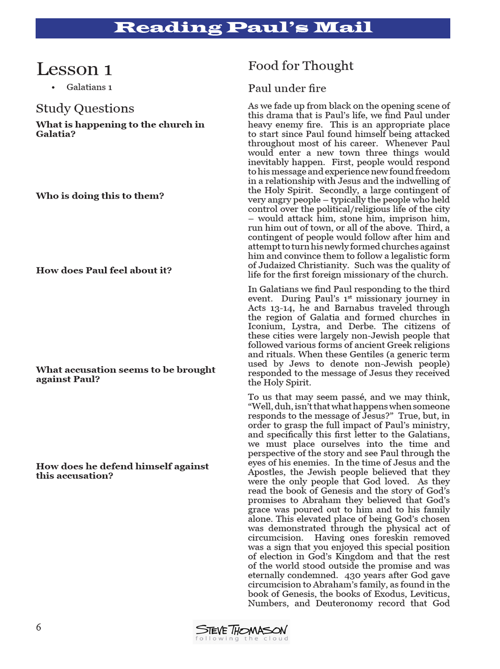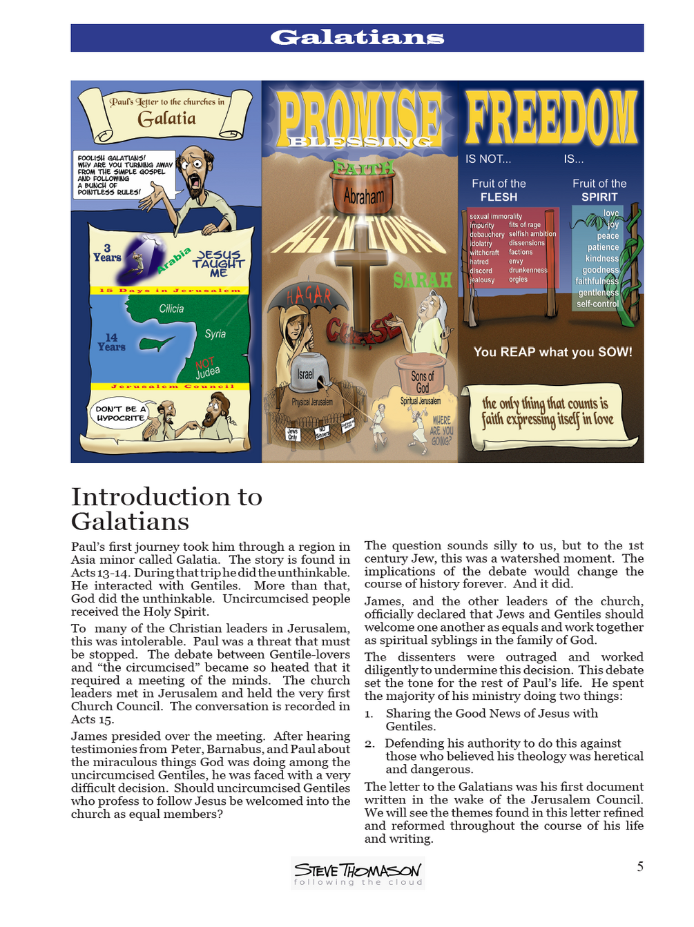 Study Paul's letter to the Galatian churches in 5 lessons. This PDF study comes from the larger collection . It is designed for small group or independent study.