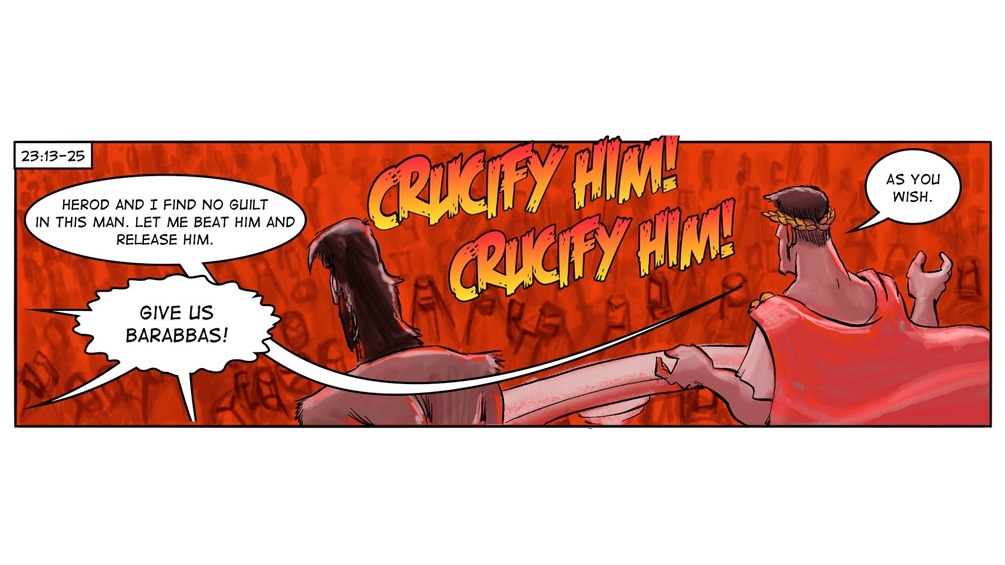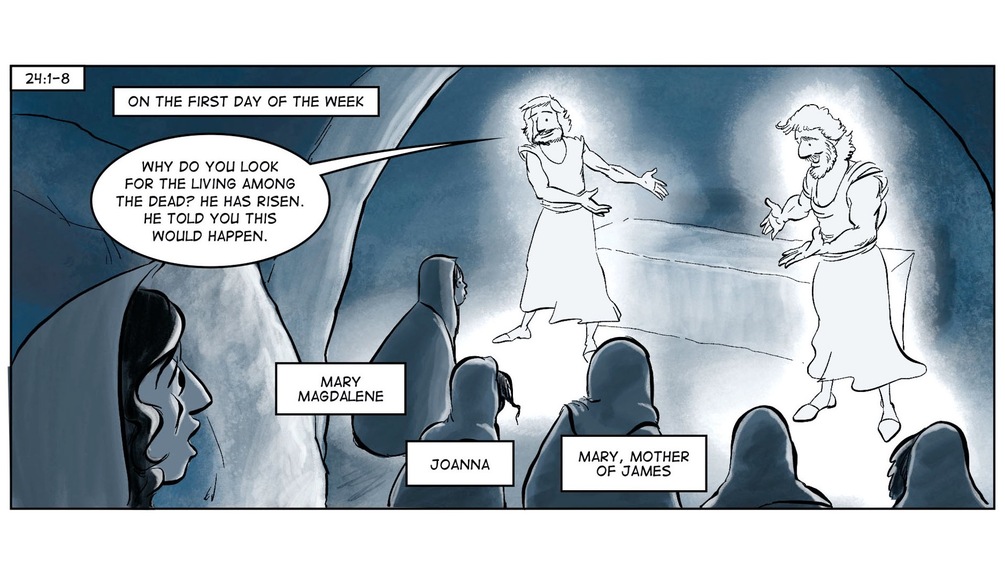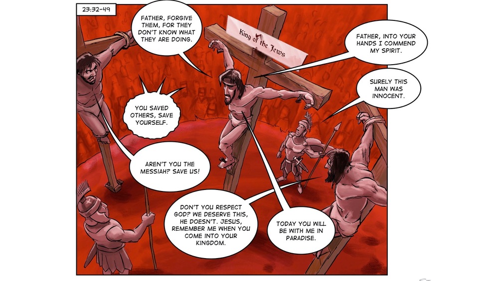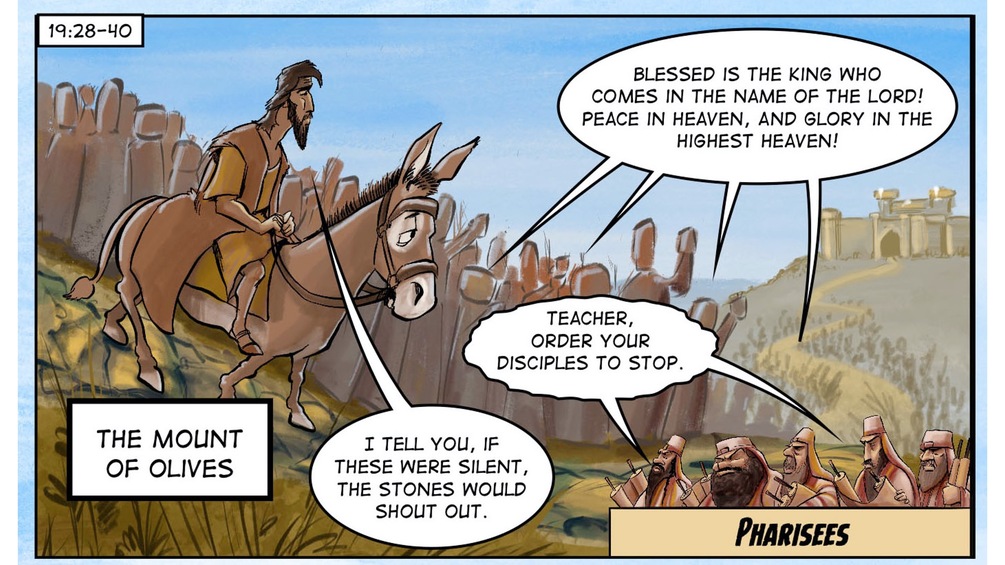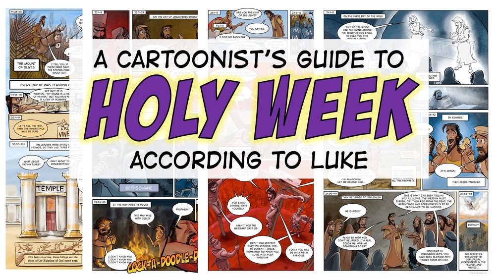 This Mega Pack tells the story of Holy Week from the Gospel of Luke, in one download. With one click, download a PowerPoint with 100 slides, a folder with 100 .jpg images, and a PDF with four full-color graphic novel pages. You can access each of these files for free on the individual pages (see links below). But, if you want the convenience of one click, then this Mega Pack is for you.