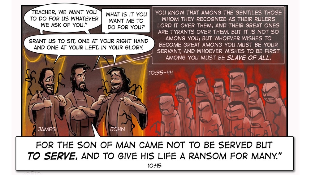 This PowerPoint and Image Pack offers a visual meditation on Mark 10:32-52. Jesus begins his journey to Jerusalem. Along the way James and John ask for special places of power in Jesus' Kingdom. Jesus reminds them that leaders in his Kingdom are called to be servants of all. It is blind Bartimaeus that asks the right question, "My teacher, let me see again."