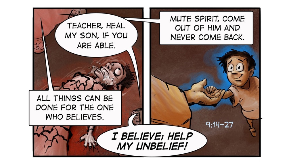 This PowerPoint presentation (and .zip image pack) offers a visual meditation on Mark 9:9-50. Jesus comes down from the Mount of Transfiguration and confronts another unclean spirit. His disciples are baffled as to why they could not cast it out. The disciples then argue over who among them is the greatest. Jesus tells them that the greatest among them must be the servant of all and be like a child.