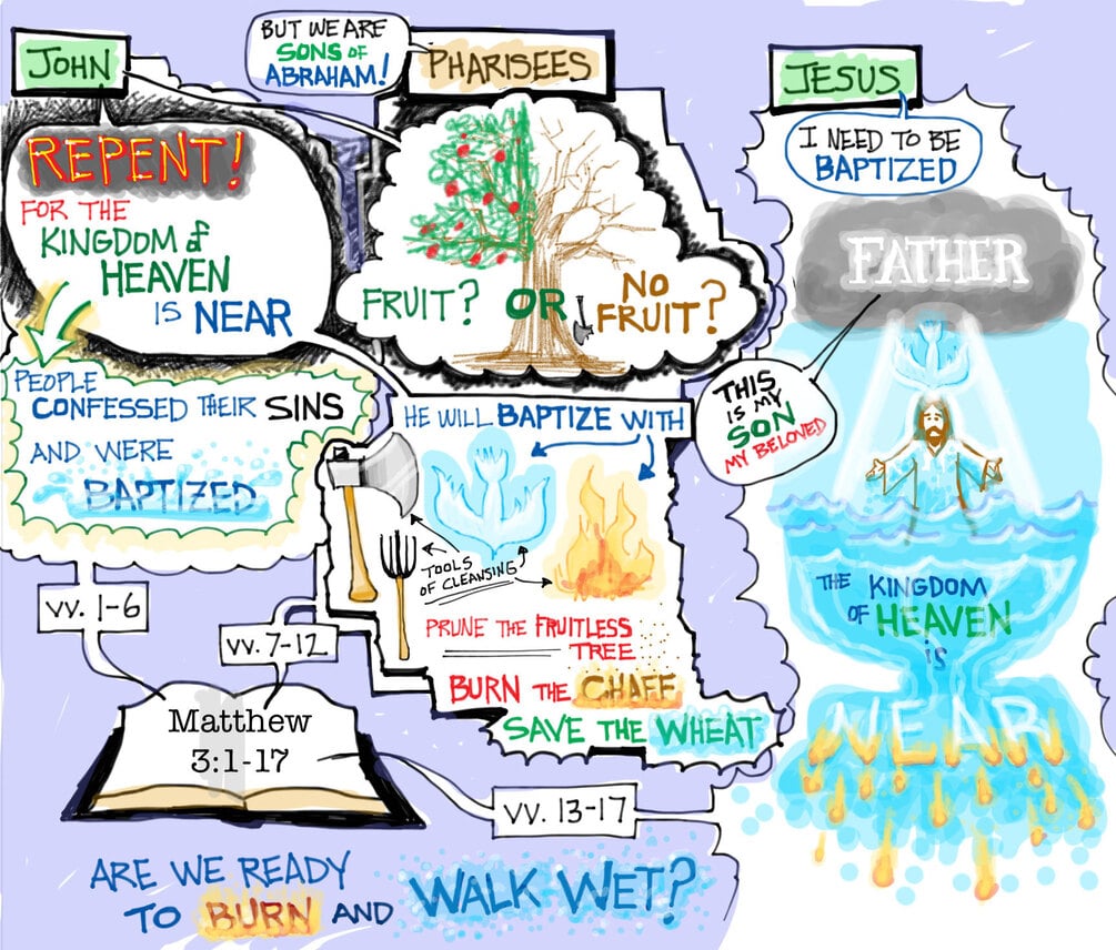 Matthew 3:1-17 tells the story of John the Baptist and the baptism of Jesus. This sermon connects these stories to our own baptismal identity and calls for a renewal of the life that dies to self and walks in the power of the Holy Spirit.
